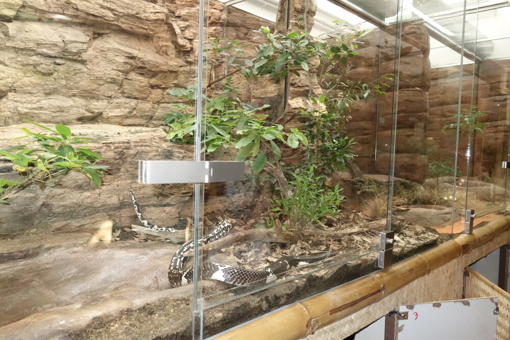 Je třeba si uvědomit, že výroba terárií má často velmi vysoké požadavky na bezpečnost. Nejinak tomu bylo např. ve výše uvedené zakázce, kde služby našeho sklenářství využila ZOO Plzeň při stavbě pavilonu pro jedovaté hady. Terárium bylo třeba kompletně navrhnout a následně realizovat tak, aby splňovalo přísné bezpečnostní normy. Vysoké požadavky se týkaly odolnosti proti rozbití a zároveň nesměly vzniknout ani malé prostory, kterými by mohli prolézt nově narození hadi.
