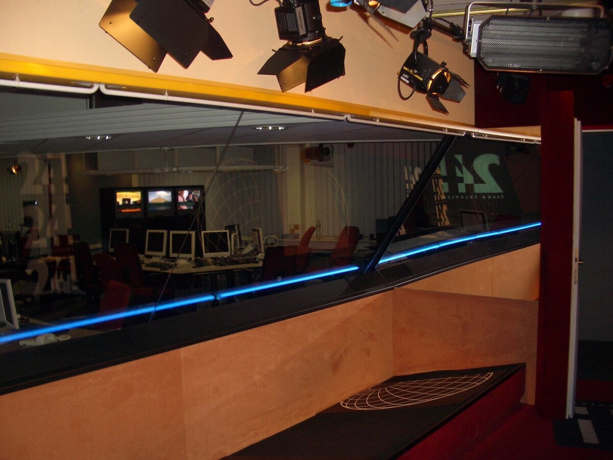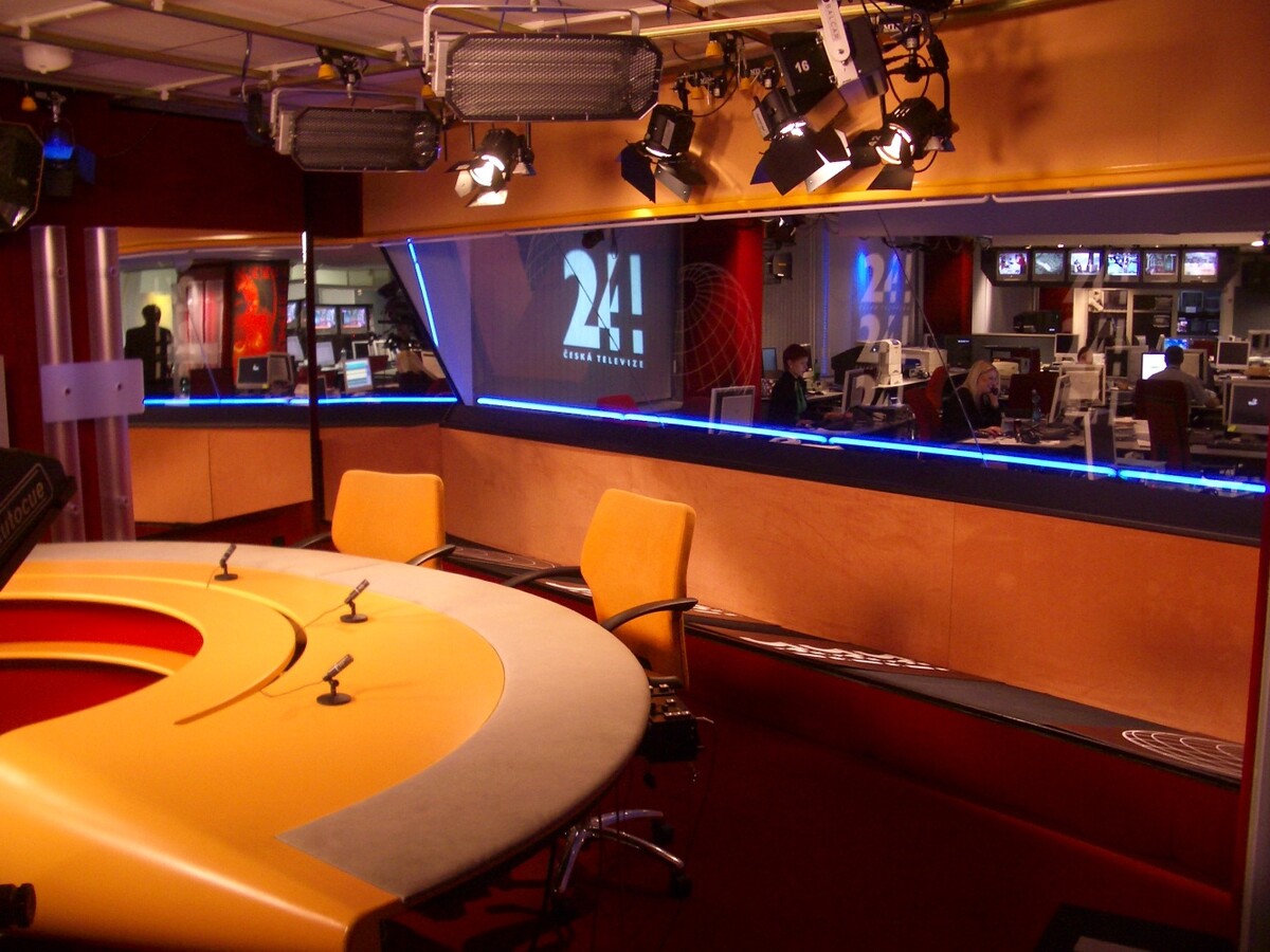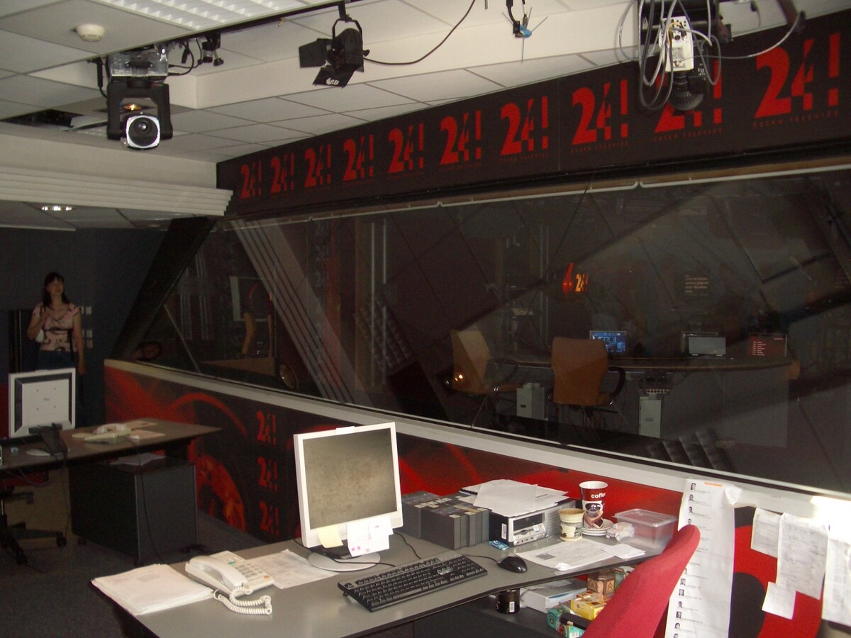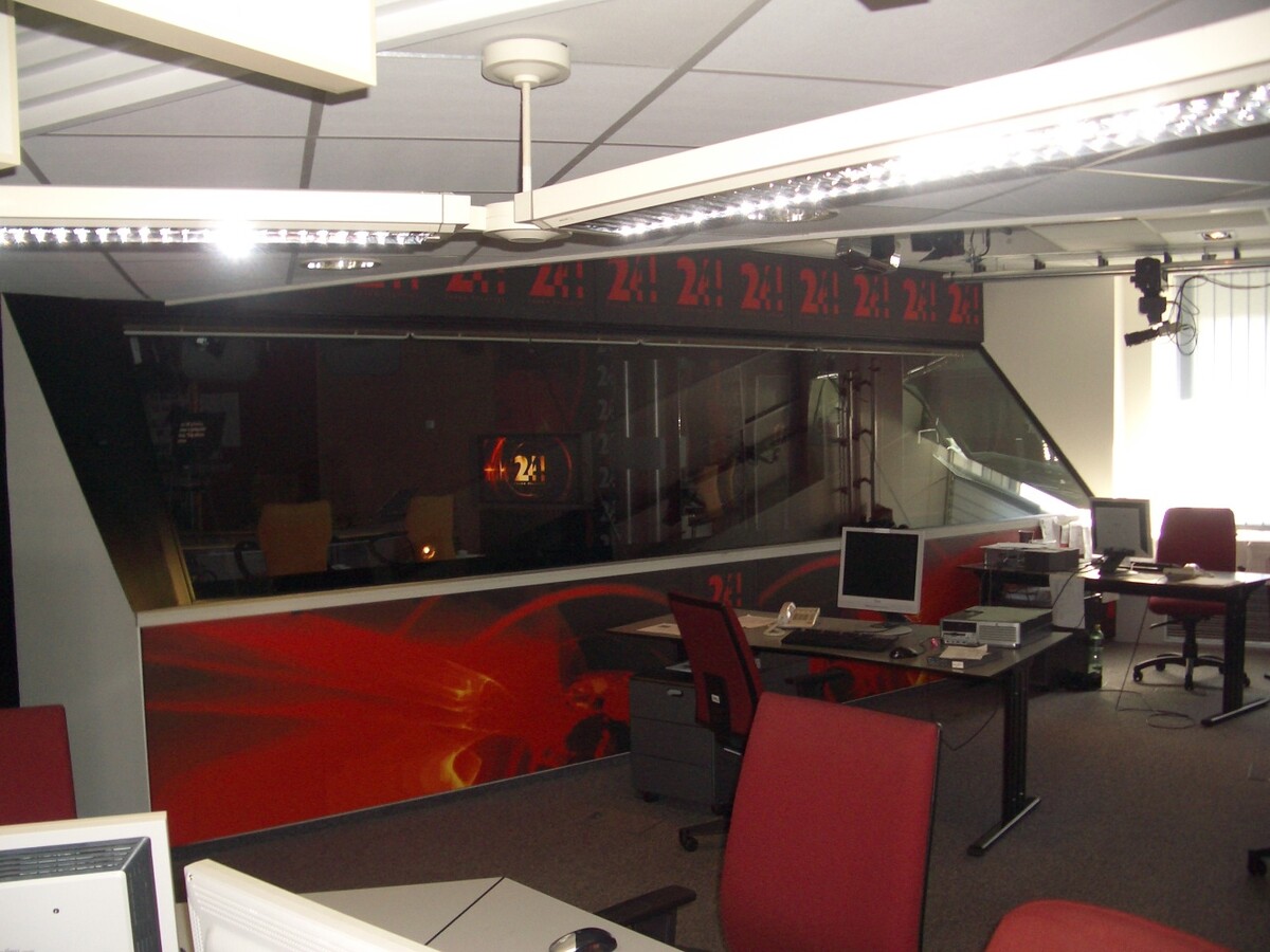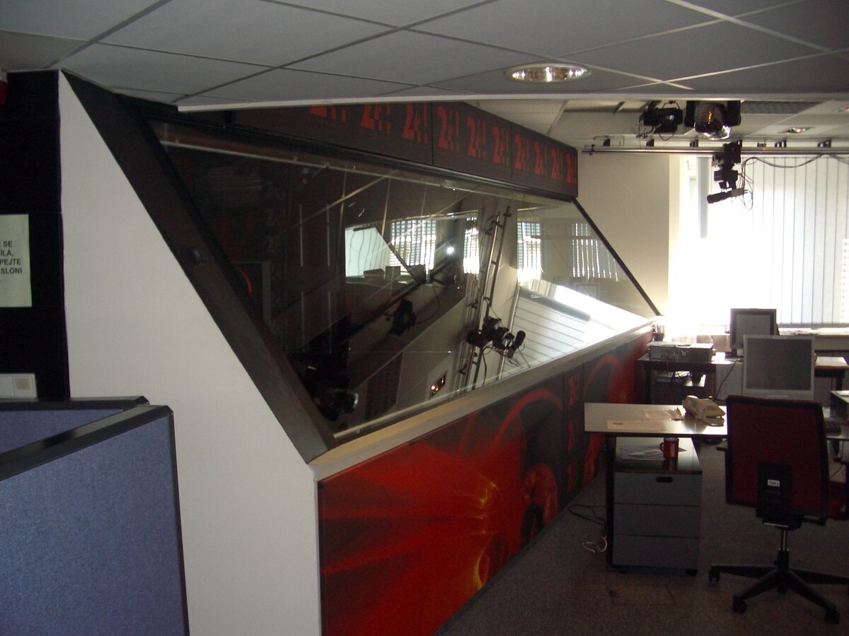Skleněná příčka redakce zpravodajství ČT. Kompletní dodávka s konstrukcí.