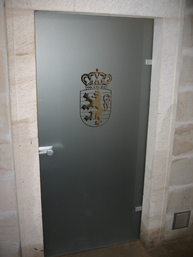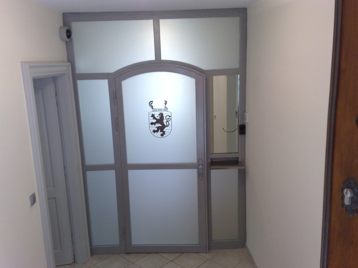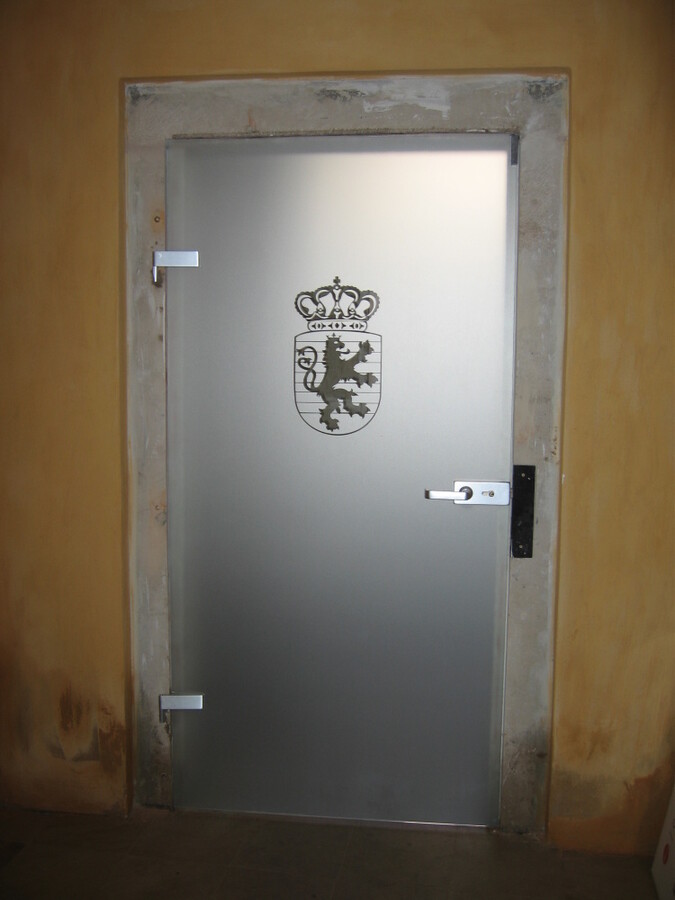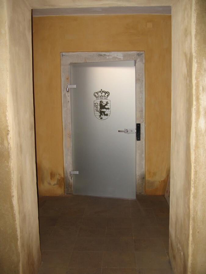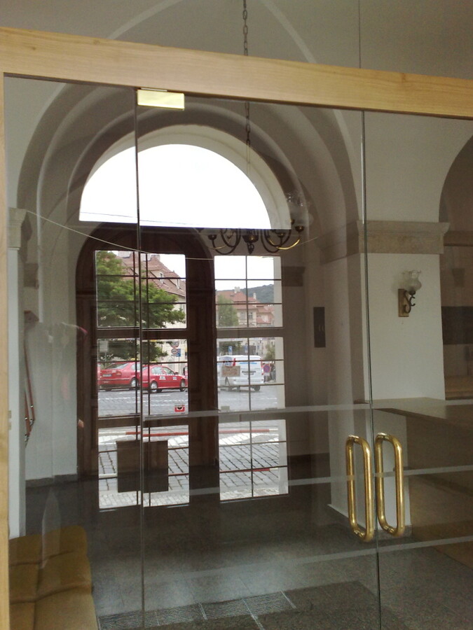 LUCEMBURSKÁ AMBASSADA - skleněné stěny a dveře, pochozí sklo historické studny