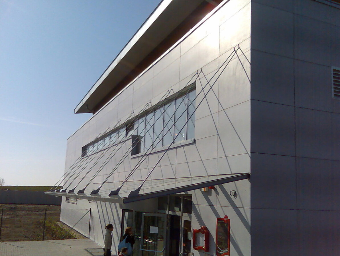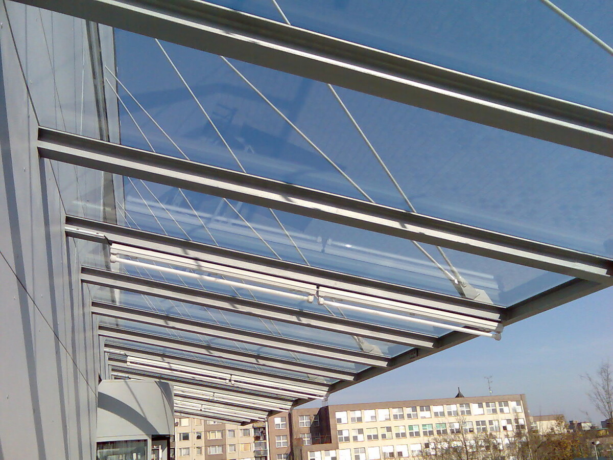 Markýza z lepeného čirého bezpečnostního skla VSG - Connex 6.6.2, sklo strukturálně lepené k žárově pozinkované konstrukci markýzy