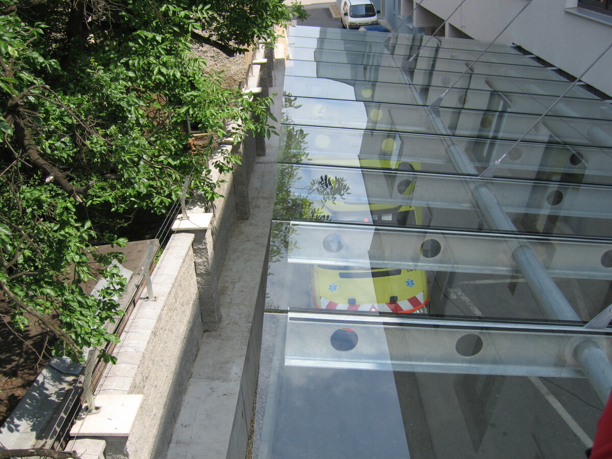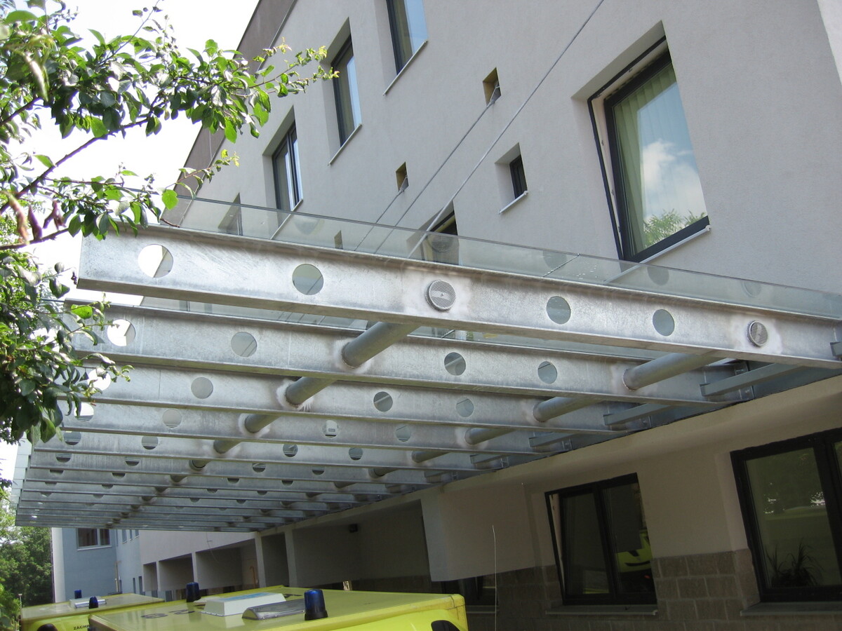 Mohutná žárově pozinkovaná konstrukce a strukturálně přilepené vrstvené sklo VSG 6.6.2 - Connex.