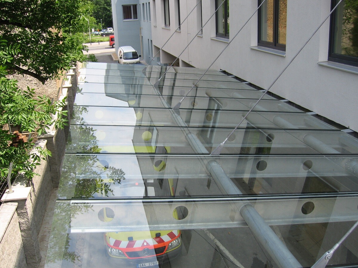 - V zásadě lze markýzy ze skla rozdělit na zavěšené na táhlech, samonosné jako skleněná vetknutá konzole a na skleněné markýzy podepřené konstrukcí.