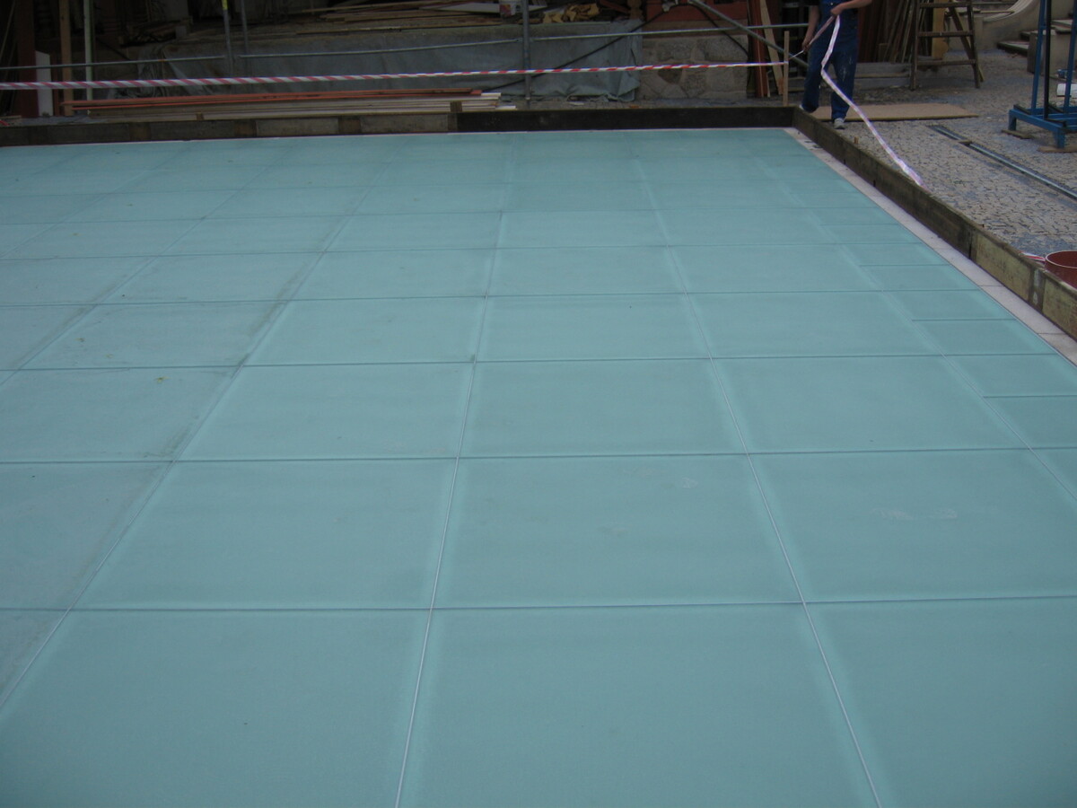 Kompletní dodávka konstrukce a pochozího skla VSG ESG 3 x 10 mm v protiskluzové úpravě Antislip Matelux vč. zajištění souvisejících statických posudků.
