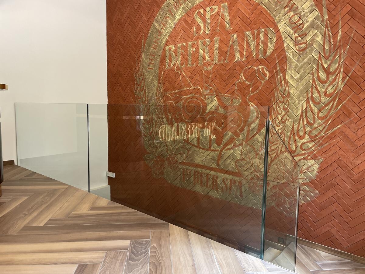 Skleněné zábradlí od naší společnosti zdobí pivní lázně Beerland v Praze.