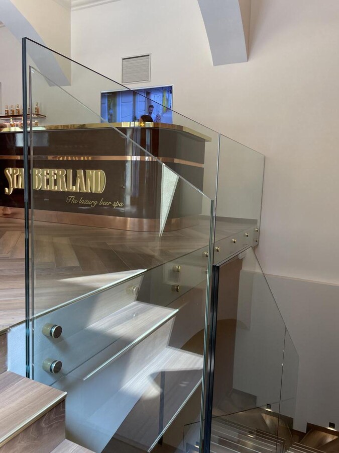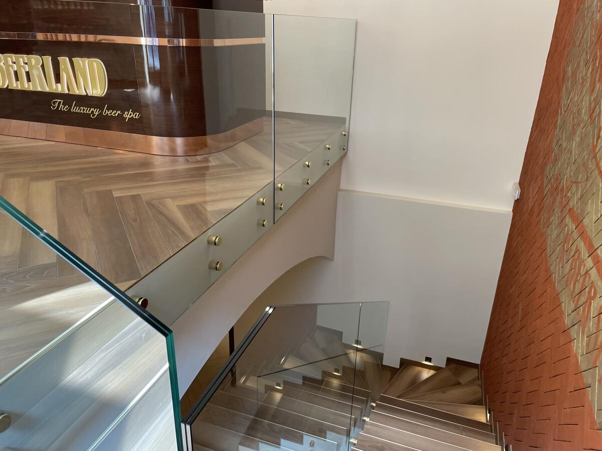 PIVNÍ LÁZNĚ BEERLAND PRAHA - skleněné zábradlí