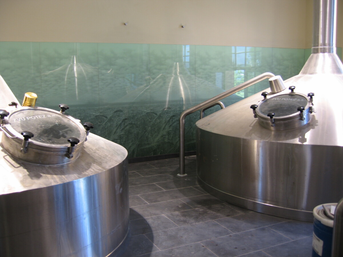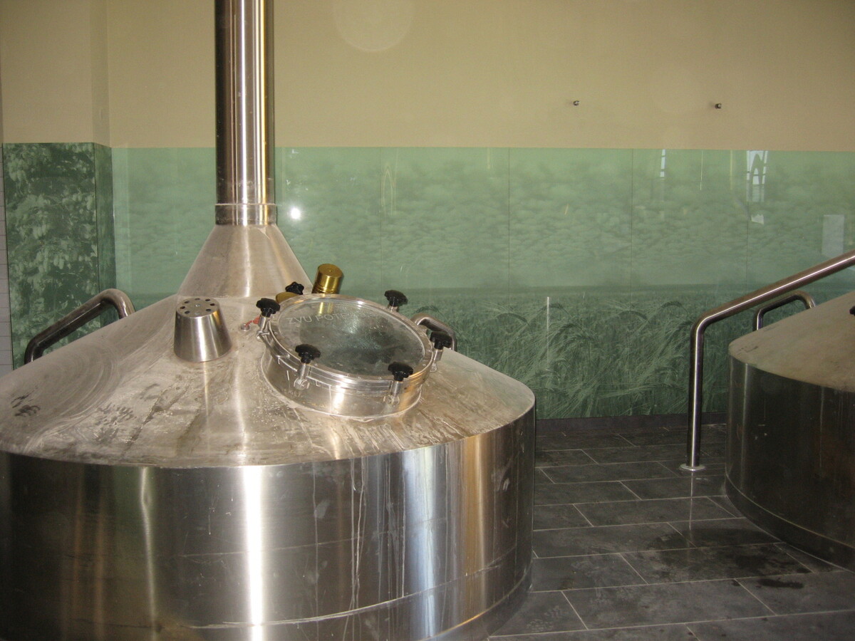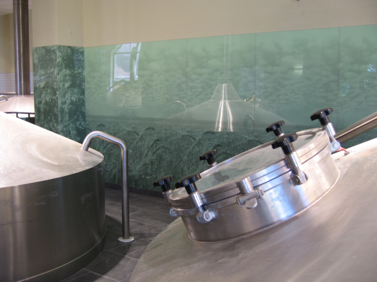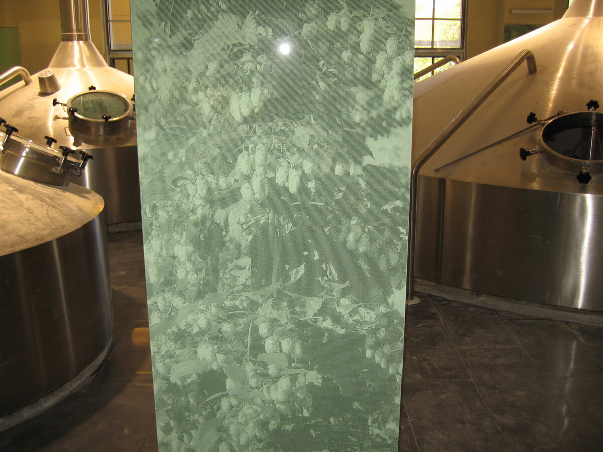 PIVOVAR SVIJANY - obklad stěn varny sklem s motivem chmelu