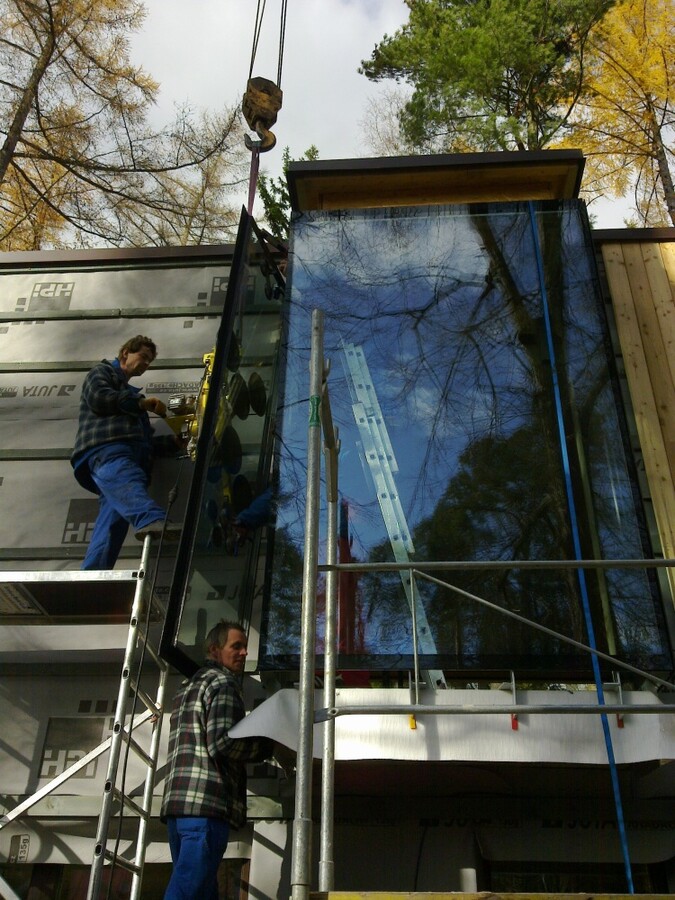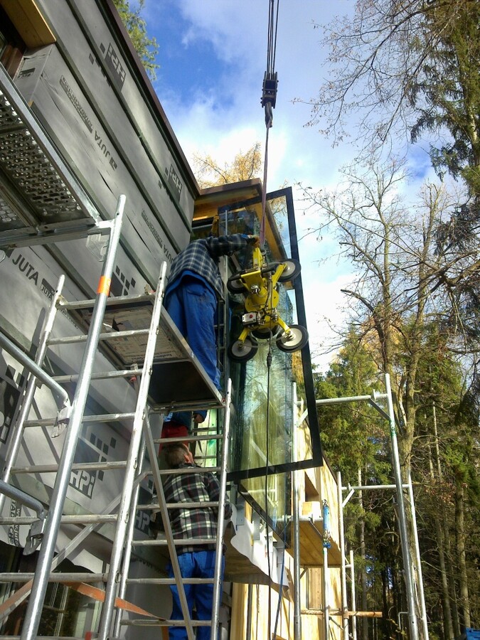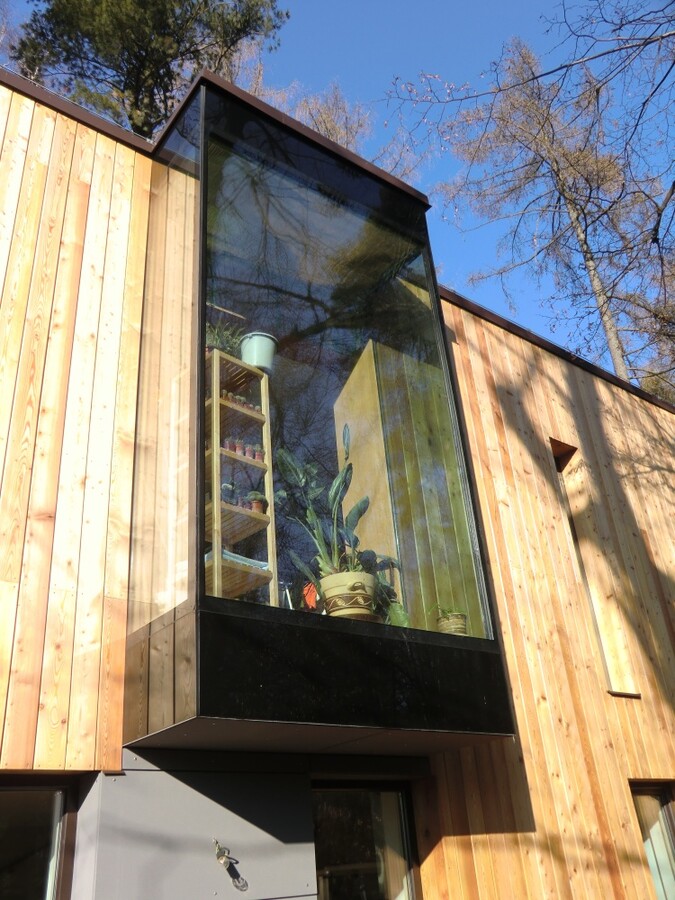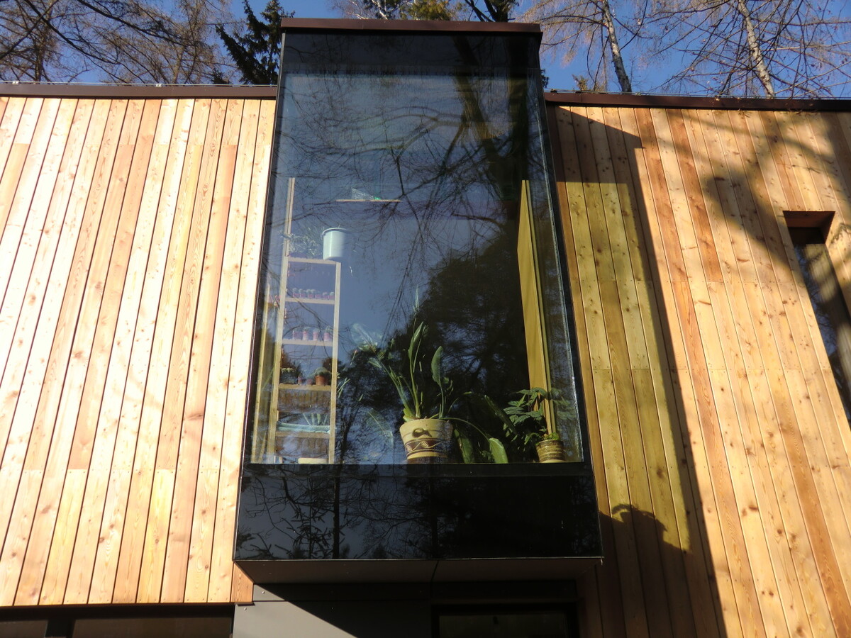 RD JEVANY - celoskleněná mansarda na fasádě dřevostavby RD