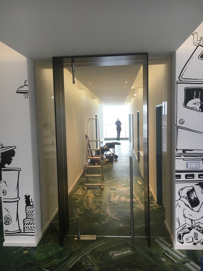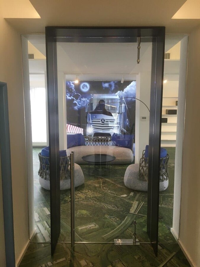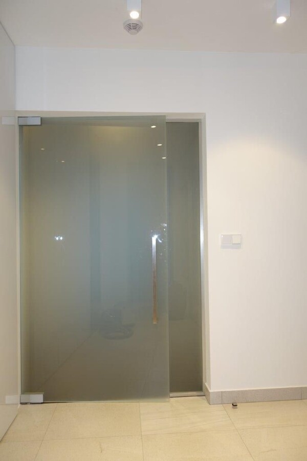 - Skleněné dveře jako součást stěn a příček ze skla.
